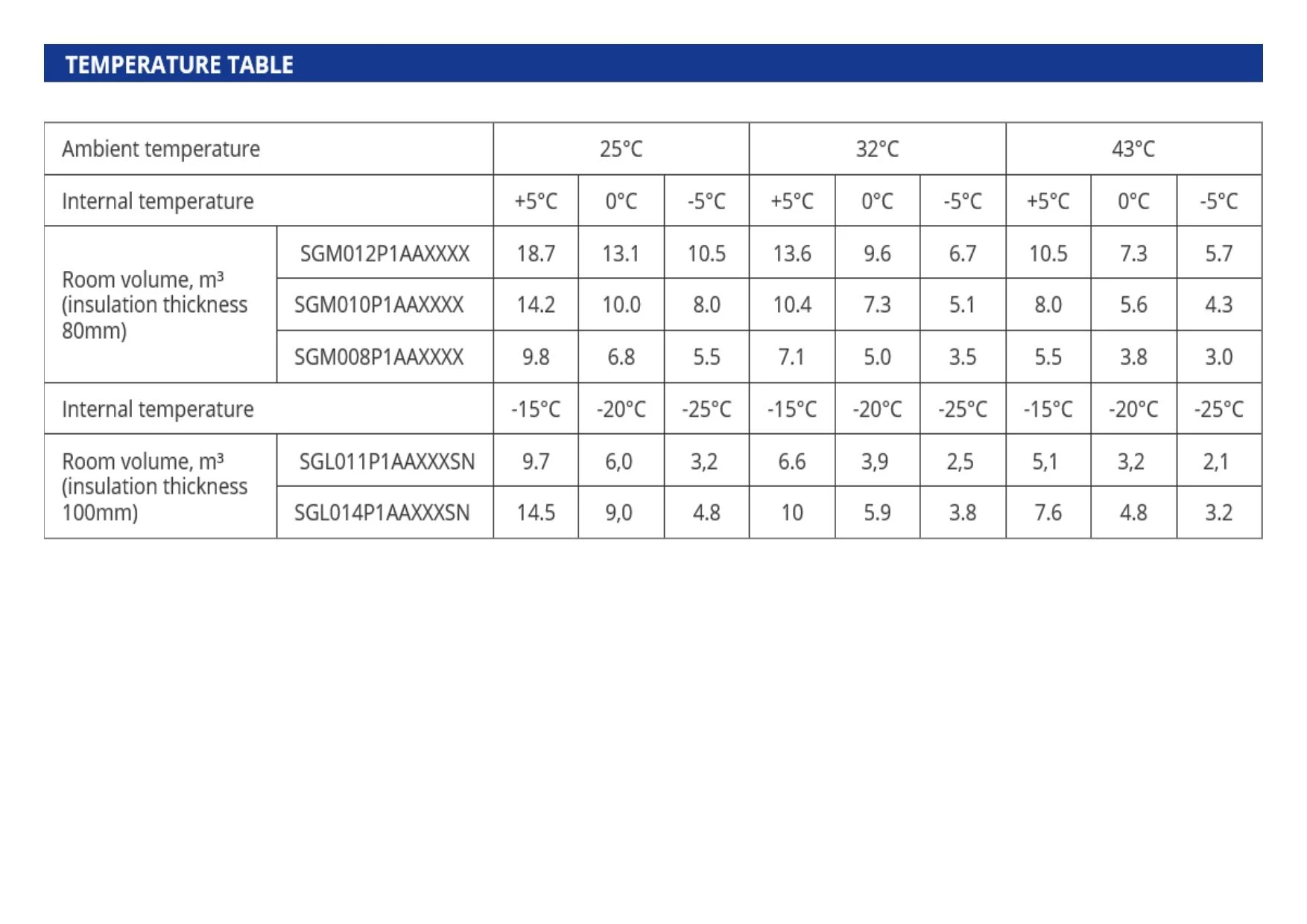 | PREVÁDZKOVÁ TEPLOTA: | -5/+5°C (+16°C/+32°C ABM) | ||